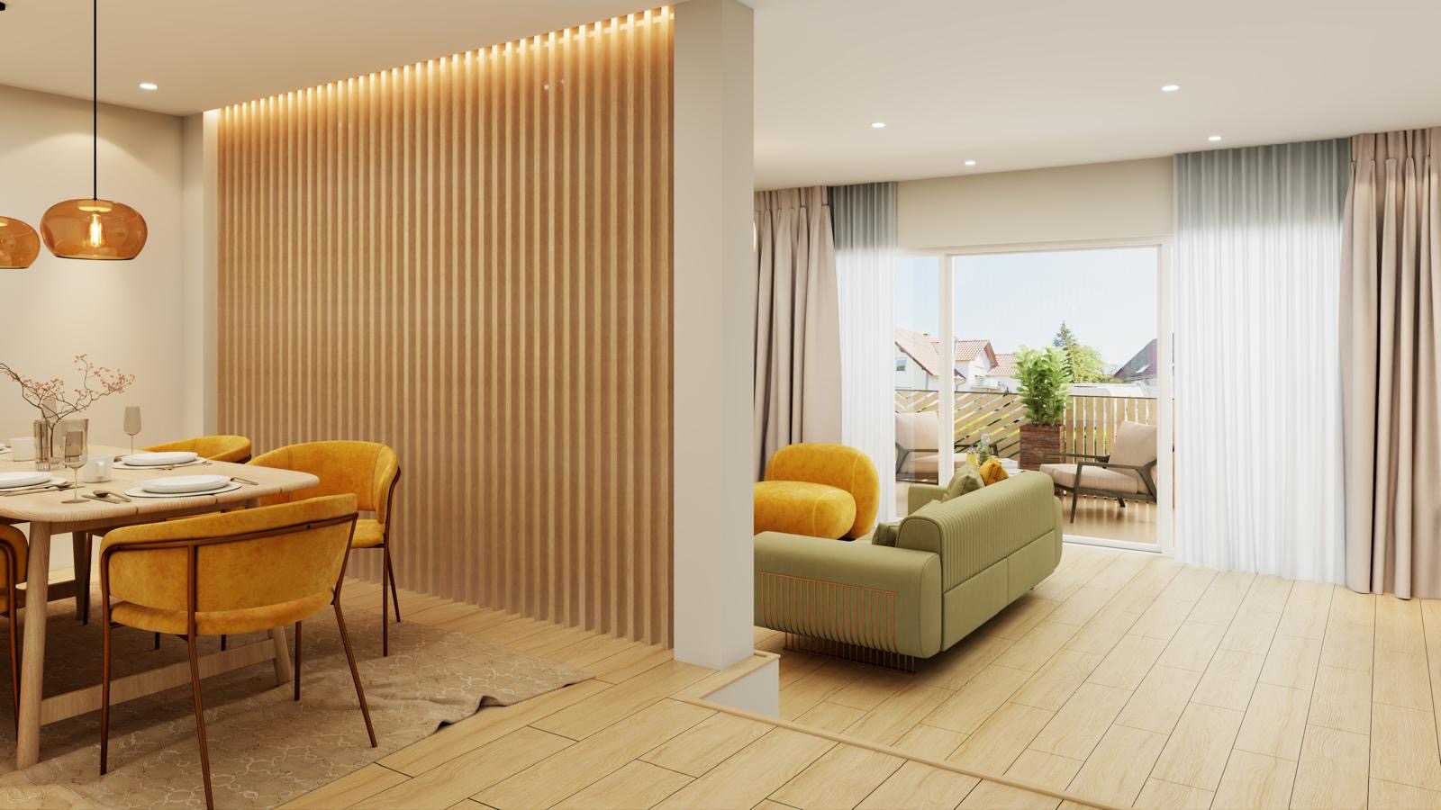 Das Dachgeschoss bildet den privaten Rückzugsbereich der Eltern und erstreckt sich über ca. 45 m². Es umfasst ein großzügiges Schlafzimmer, ein eigenes Badezimmer sowie ein separates Ankleidezimmer. Ein weiterer, durch Gauben belichteter Raum und die angrenzende Loggia eröffnen einen wunderschönen Ausblick in die umliegende Natur. Dank vorhandener Küchenanschlüsse besteht zudem die Möglichkeit, das Dachgeschoss als separate Einliegerwohnung zu nutzen – ideal für Gäste, Familienangehörige oder als Homeoffice.